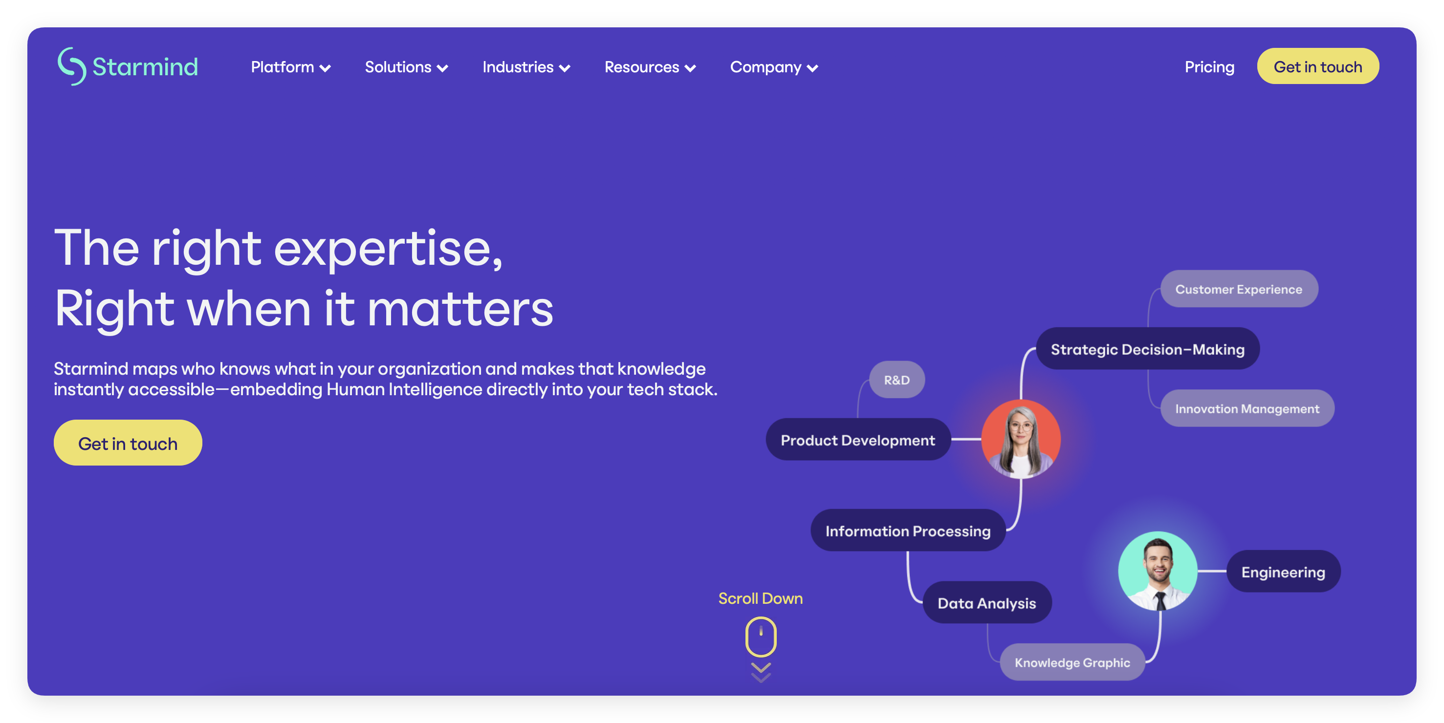 Starmind是配备实用AI功能的智能知识管理目录系统。