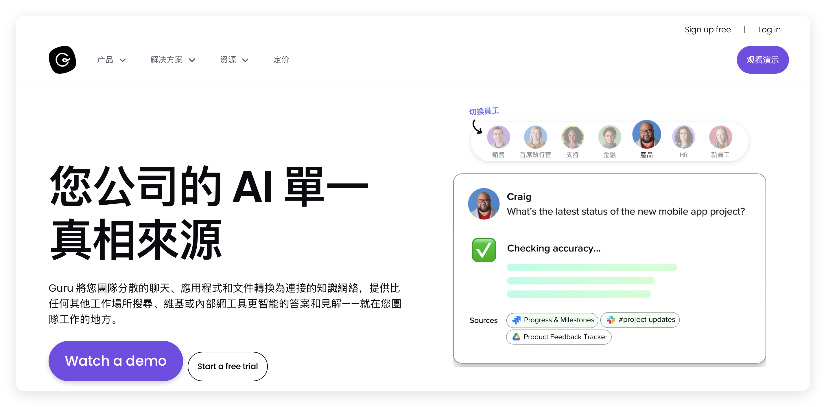 Guru致力于让内部信息、企业数据和知识管理文档对所有需求者更易获取。
