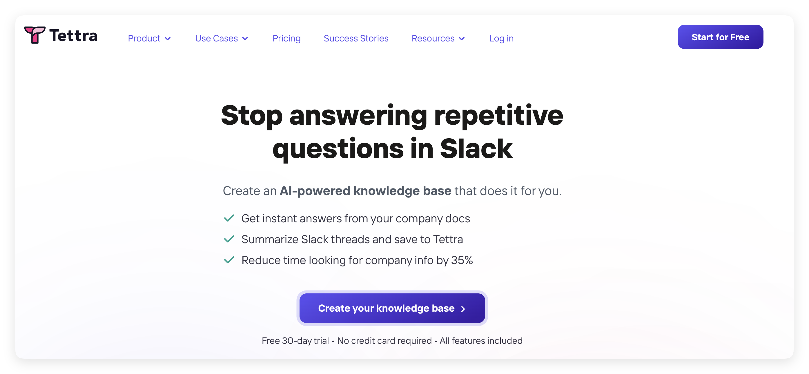 Tettra 是一款与 Slack 高度集成的轻量级知识平台,适用于中小团队快速构建知识库。具备验证机制、简洁编辑器和自动推送功能。