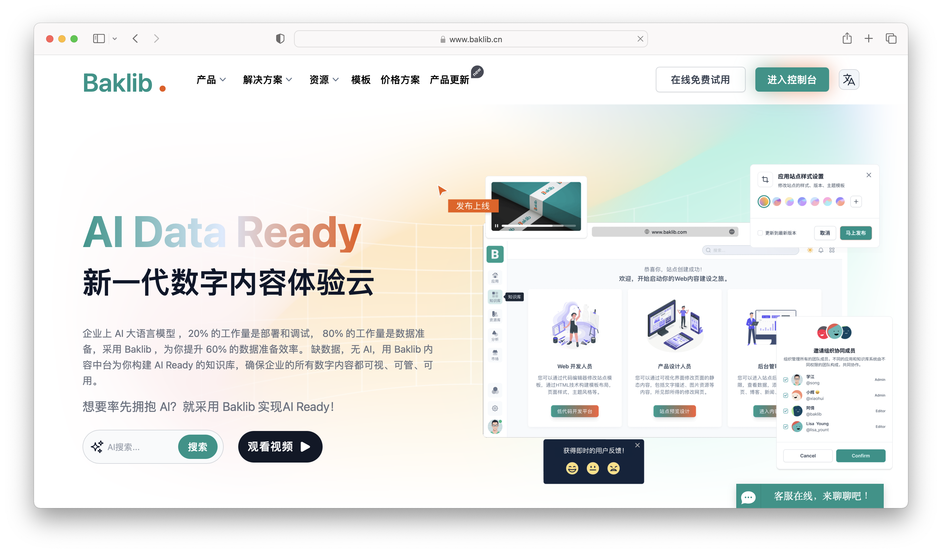 Baklib 是新一代 AI知识库与多场景数字体验构建平台,目前已托管超过1000家企业的网站与在线文档。其流行源自出色的灵活性与开放的主题生态,使企业能够依据多样化需求,轻松构建网站、文档中心与知识库系统。