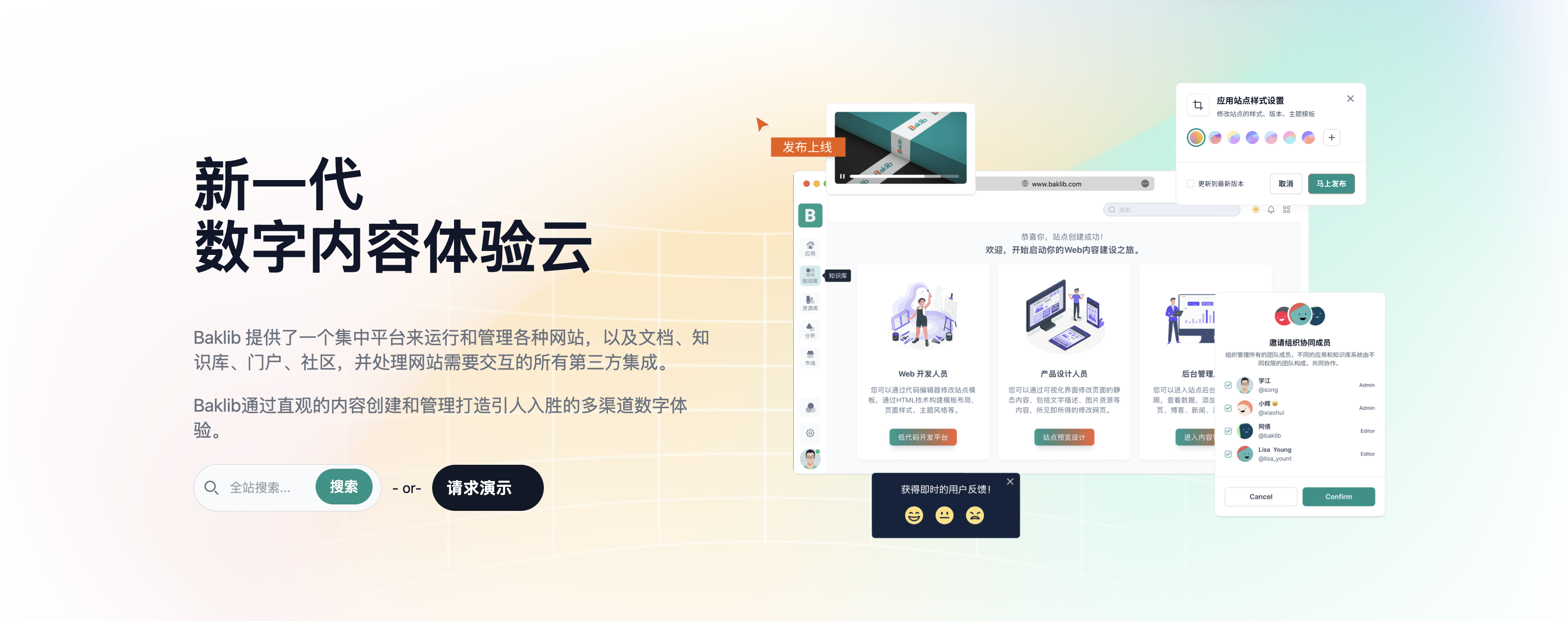 Baklib 作为专业的数字内容体验云平台,提供了一站式的内容管理、协作和知识共享解决方案。
