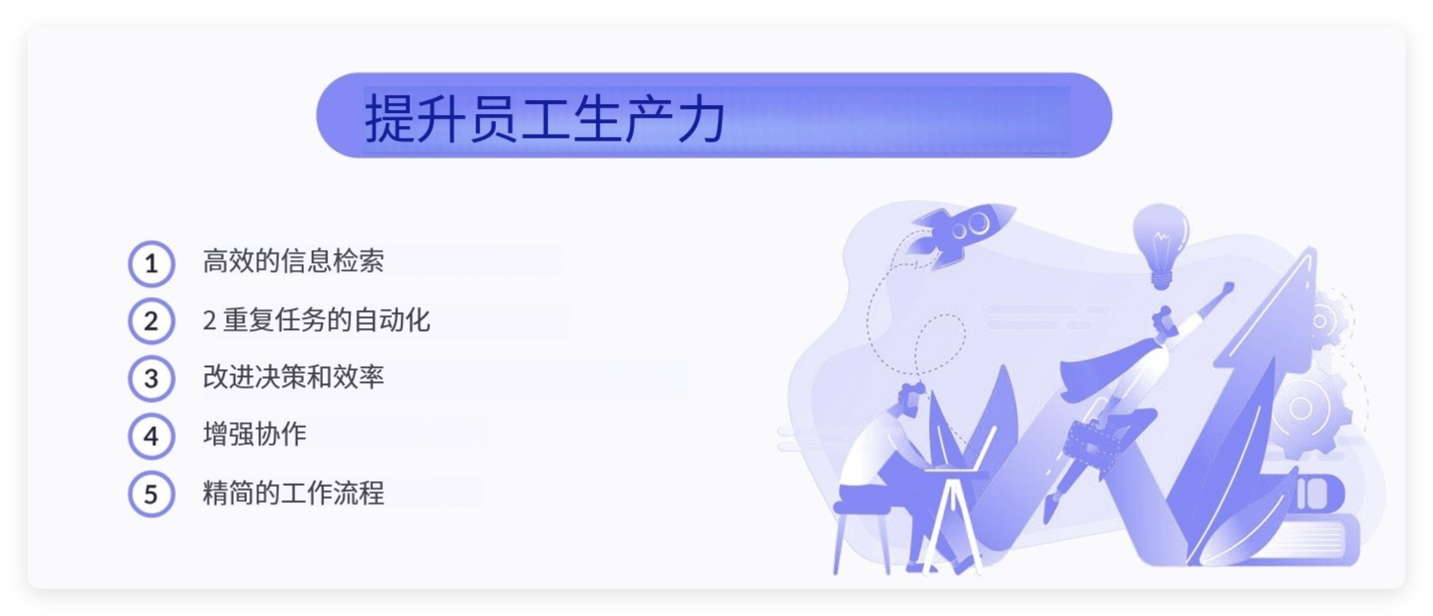 知识管理与AI技术的结合为企业带来质的飞跃:轻松获取关键信息、生成精准内容、接管重复工作、预测客户需求、优化业务流程。