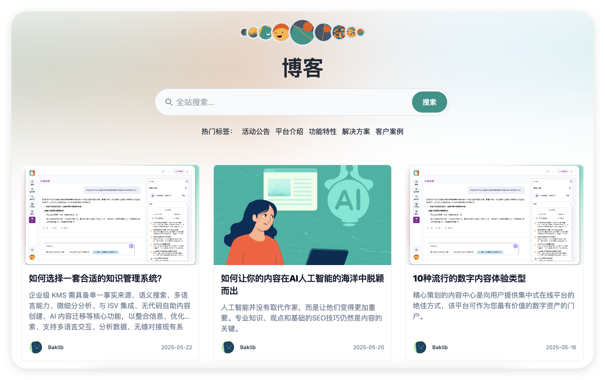 同时,Baklib 支持多渠道嵌入与权限控制,便于销售和客服高效调用内容。结合访问数据分析与协作机制,企业可持续优化内容策略,形成高效的营销闭环,实现更精准的用户触达与转化。